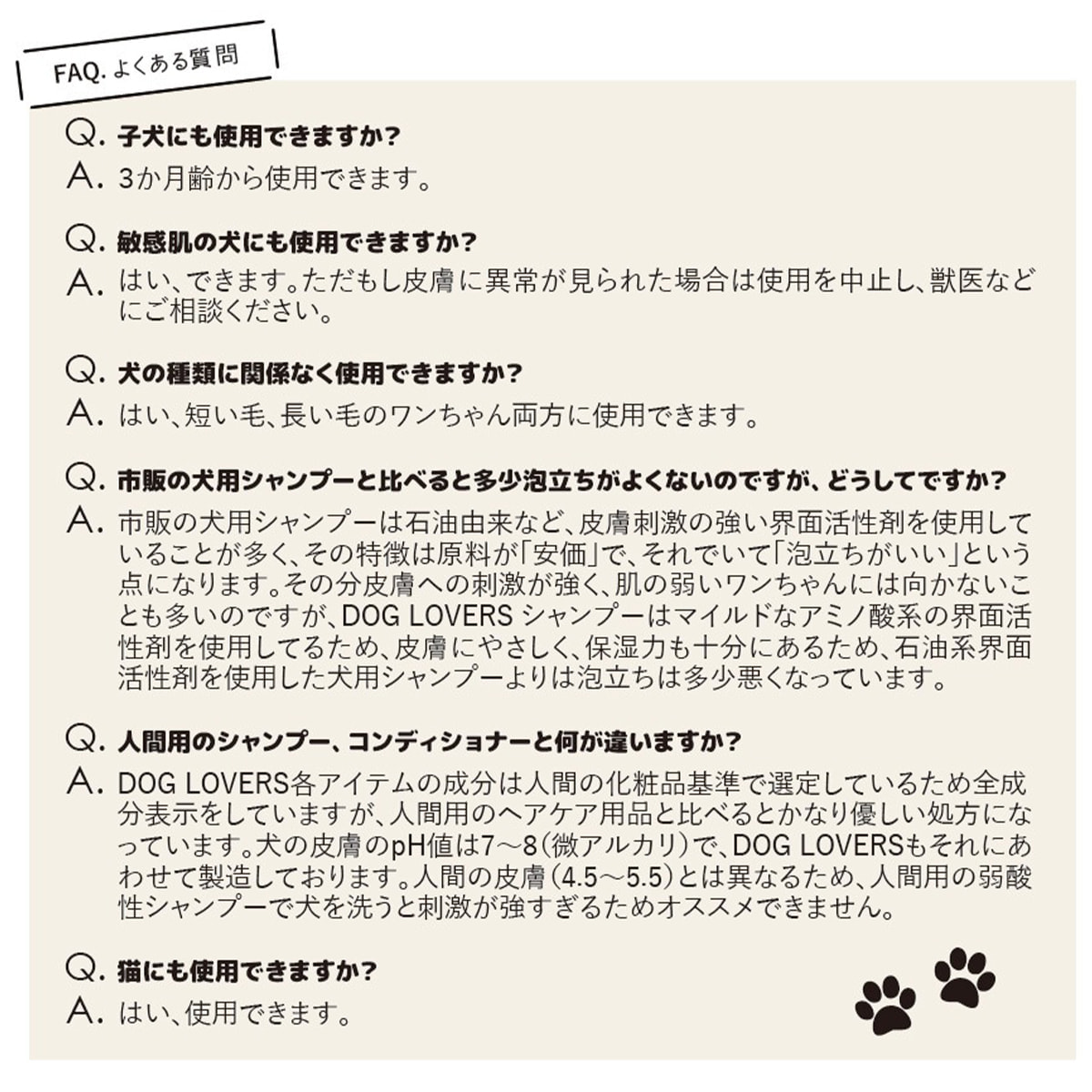 また被毛水分と油分を補い、ツヤとうるおいを保つのと同時に、香りにより不快臭を抑えます。