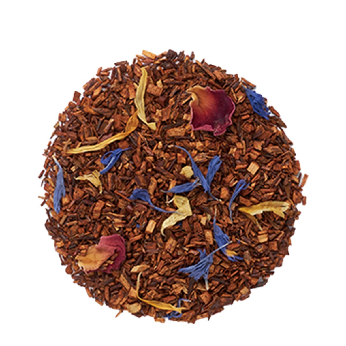 ルイボス(南アフリカ共和国産)、ローズレッド、有機マリーゴールド、コーンフラワー、香料