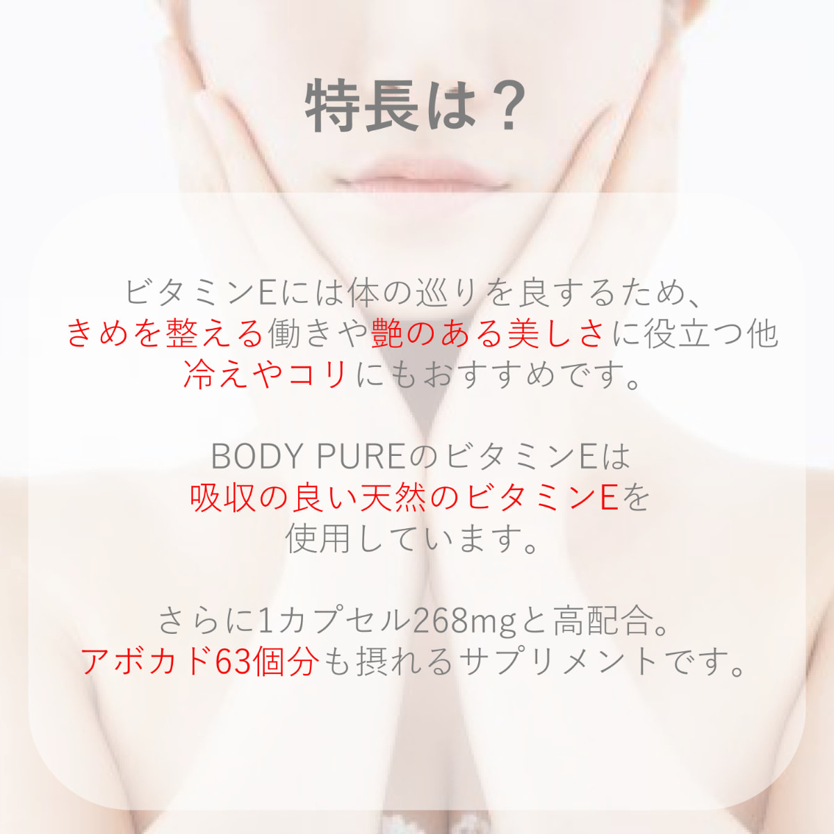 身体にやさしく、吸収されやすい植物油由来のビタミンEを1カプセルに268mg配合。