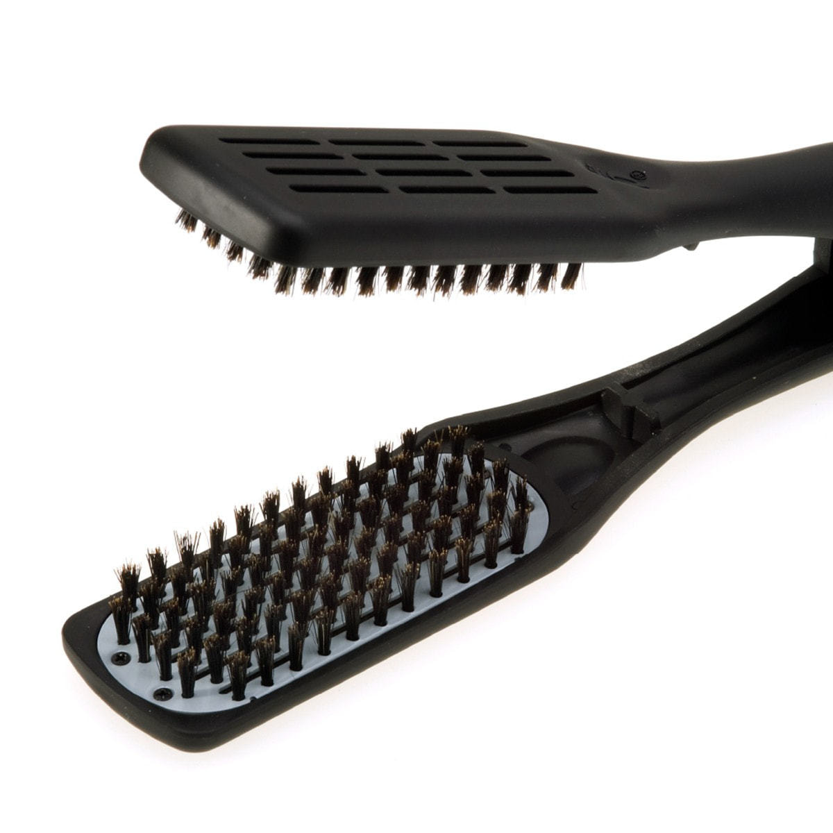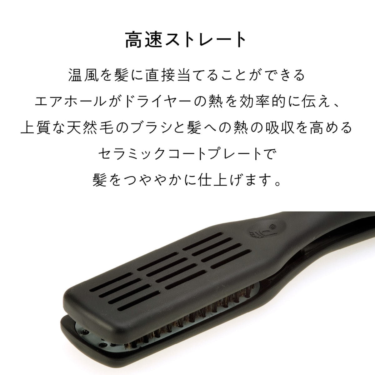 上下のブラシで挟み込み、クセの強い毛でもしっかりとストレートブローできます。