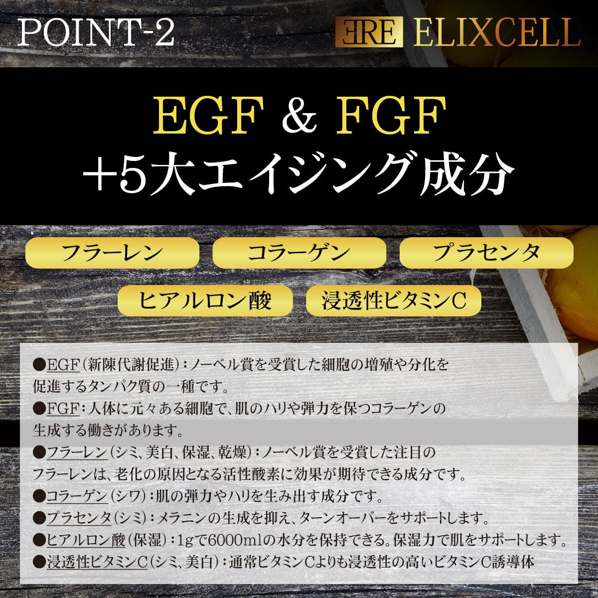水、イソペンチルジオール、ヤシ油脂肪酸PEG-7グリセリル、ポリソルベート60、ヒト幹細胞順化培養液、ヒト脂肪由来間葉系細胞エクソソーム、フラーレン、プラセンタエキス、ヒアルロン酸Na、加水分解コラーゲン、アスコルビルメチルカルボニルペンタペプチド-72-トリ-t-ブチルトリプトファナミド、酢酸トコフェロール、リソサムニウムカルカラムエキス、オニサルビアエキス、ジラウロイルグルタミン酸リシンNa、アロエベラ葉エキス、ヒバマタエキス、クレマティス葉エキス、セイヨウナツユキソウ花エキス、スギナエキス、セイヨウキズタ葉/茎エキス、グリチルリチン酸2K、ペンチレングリコール、グリセリン、BG、アミロペクチン、カルボマー、キサンタンガム、水添レシチン、ポリソルベート80、プロパンジオール、トリ(カプリル酸/カプリン酸)グリセリル、PEG-6(カプリル酸/カプリン酸)グリセリズ、水酸化K、クエン酸、EDTA-2Na、乳酸、PVP、1,2-ヘキサンジオール、カプリリルグリコール、ベンザルコニウムクロリド、安息香酸Na、ソルビン酸K、フェノキシエタノール