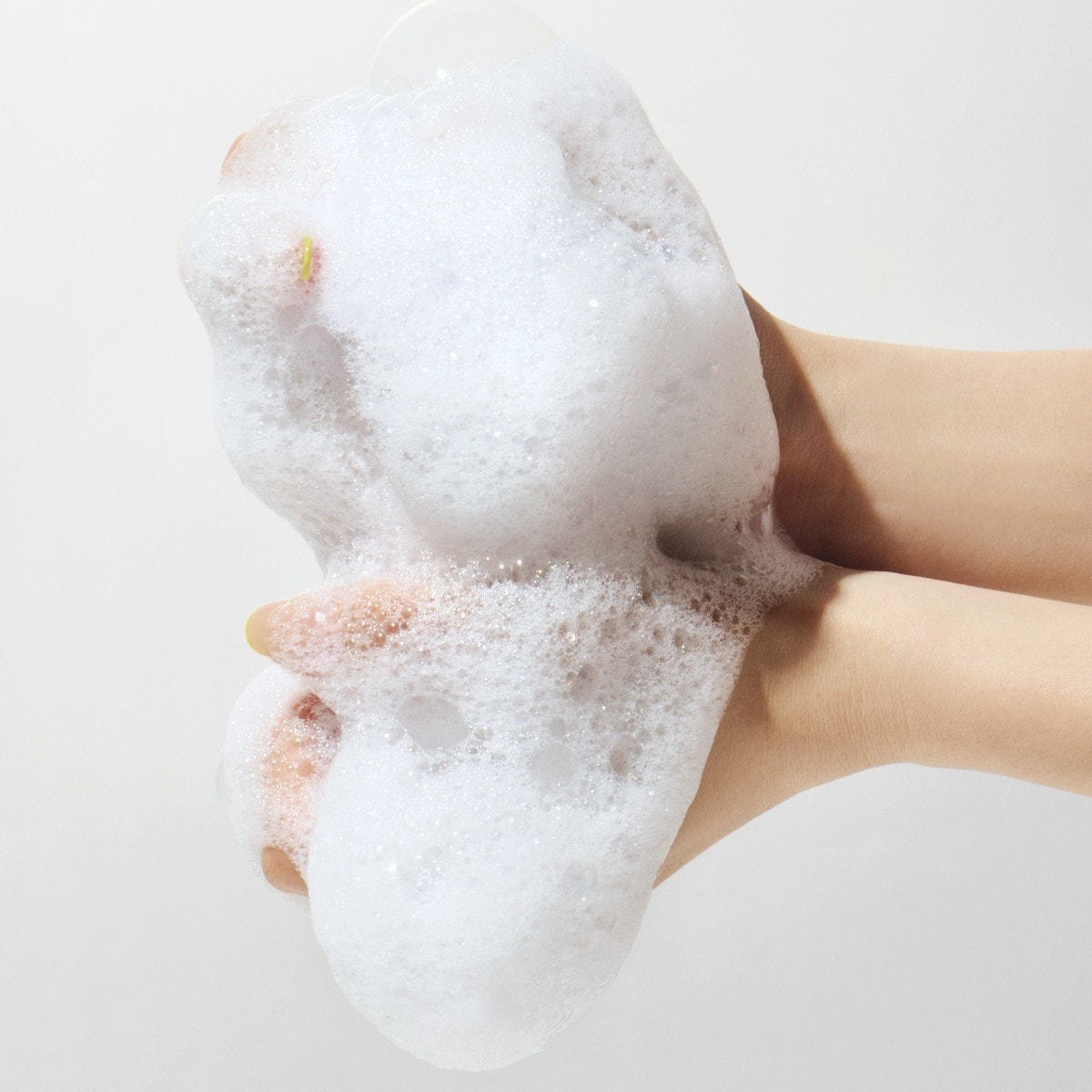 指の腹を使って前から後ろへ優しく洗ったあと、よく洗い流してください。