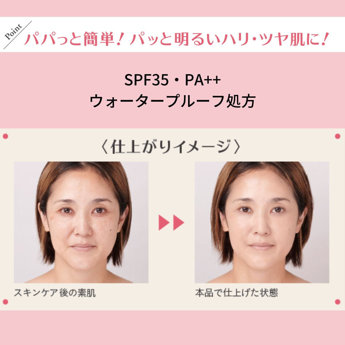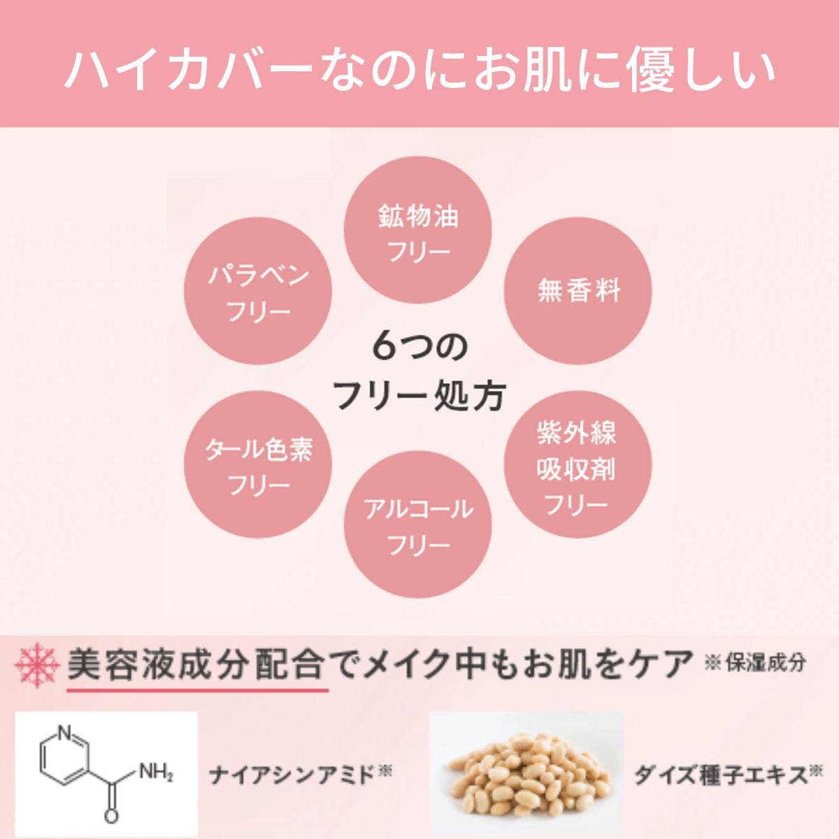 シクロペンタシロキサン、水、BG、DPG、酸化亜鉛、ジメチコン、トリエチルヘキサノイン、PEG-10ジメチコン、PEG-9ポリジメチルシロキシエチルジメチコン、セチルPEG/PPG-10/1ジメチコン、水酸化Al、ペンチレングリコール、マイカ、アクリレーツクロスポリマー、ナイアシンアミド、ダイズ種子エキス、グリチルレチン酸ステアリル、塩化Na、イソステアリン酸、ハイドロゲンジメチコン、トリエトキシカプリリルシラン、ジステアルジモニウムヘクトライト、ジイソステアリン酸ポリグリセリル-2、トコフェロール、フェノキシエタノール、タルク、酸化チタン、酸化鉄