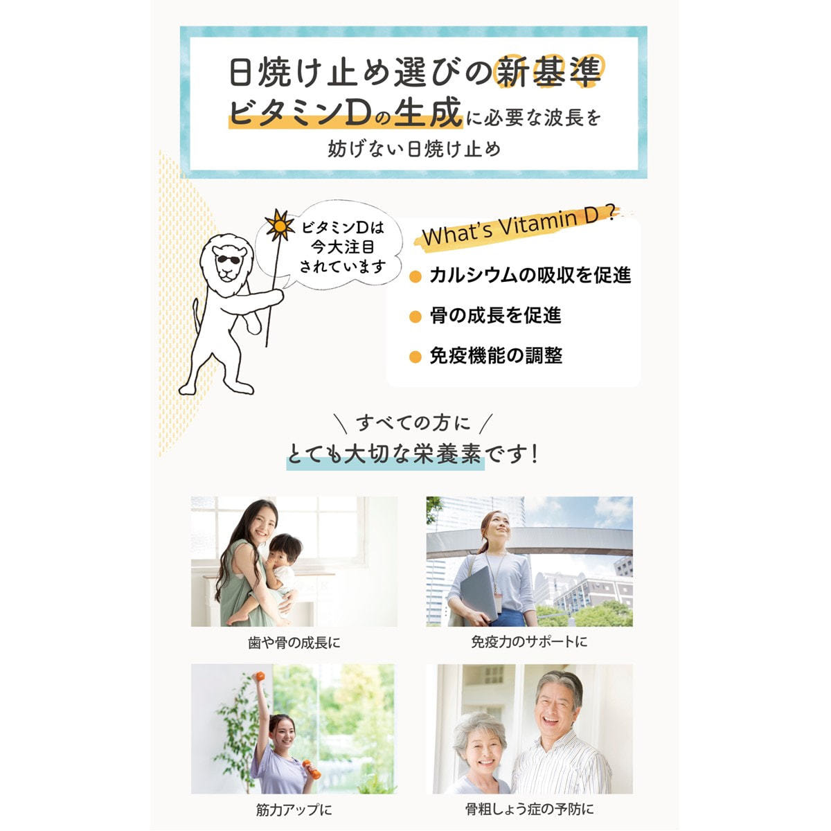 高レベルの日焼け止め効果を持ちつつ、ビタミンDの生成を妨げない欲張り設計です。