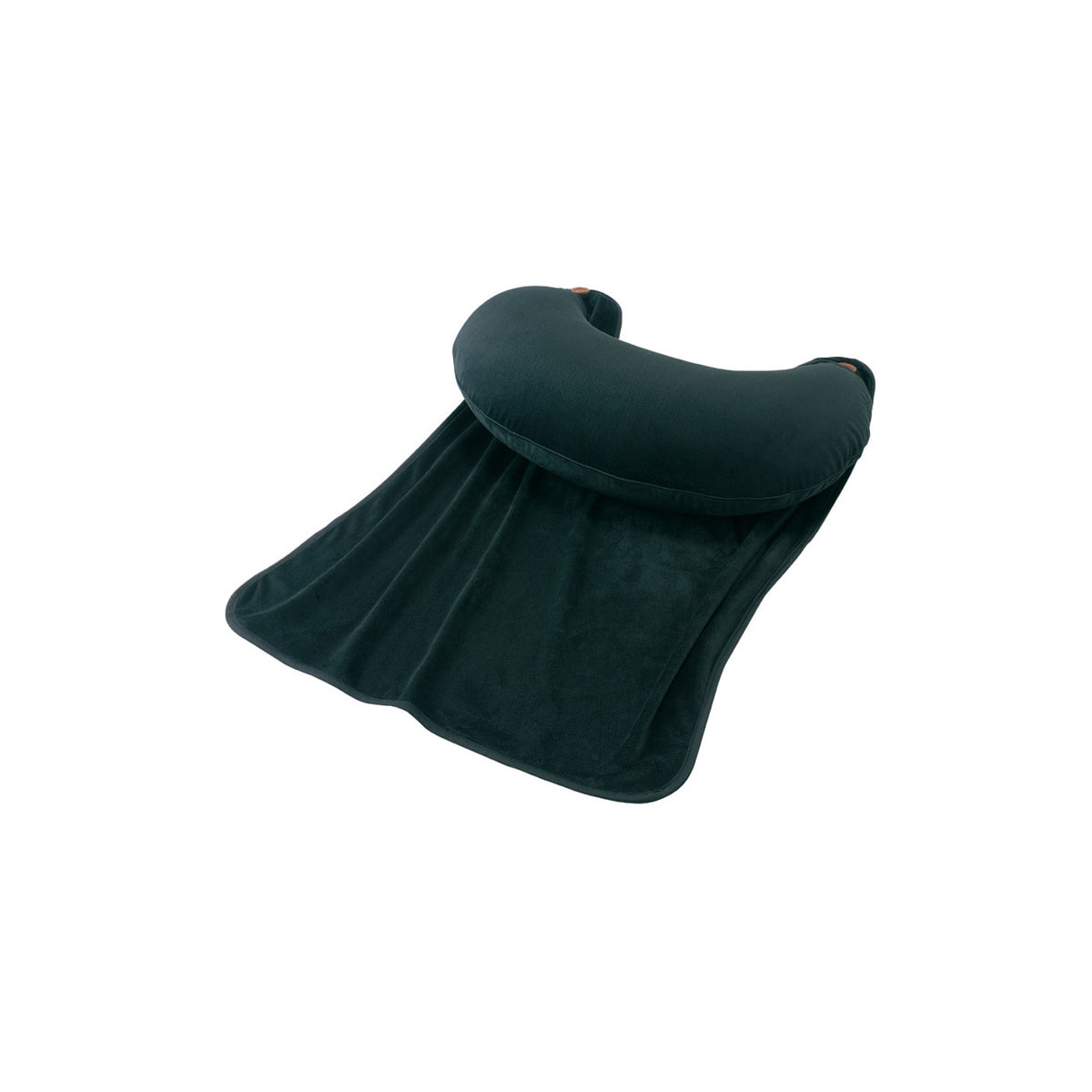 セットのひざ掛けは、クッションにボタンで付け外しが可能。