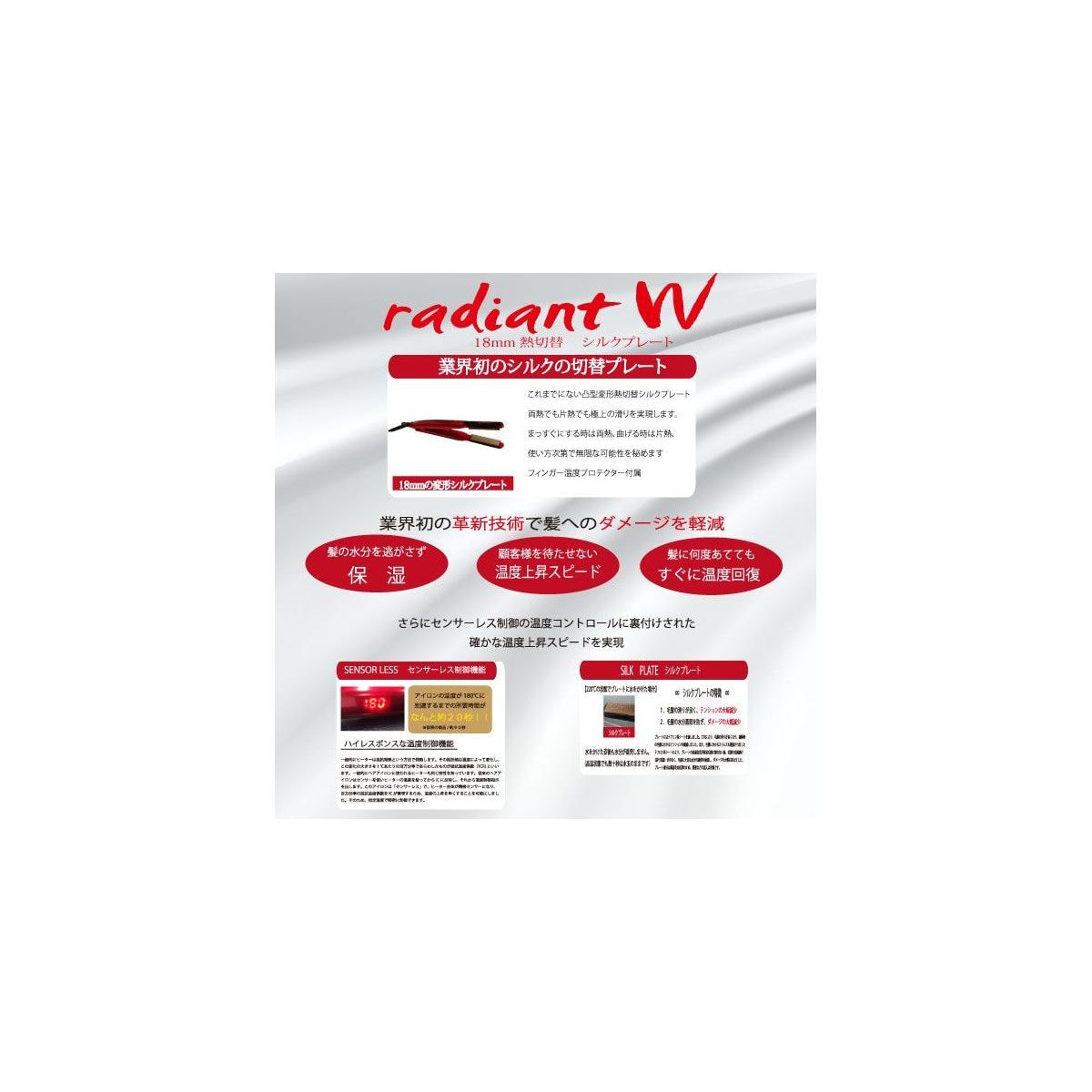 商品名:シルクプロアイロンradiant ラディアントW(18mm)≪片側/両側の熱切替可能≫ レッド