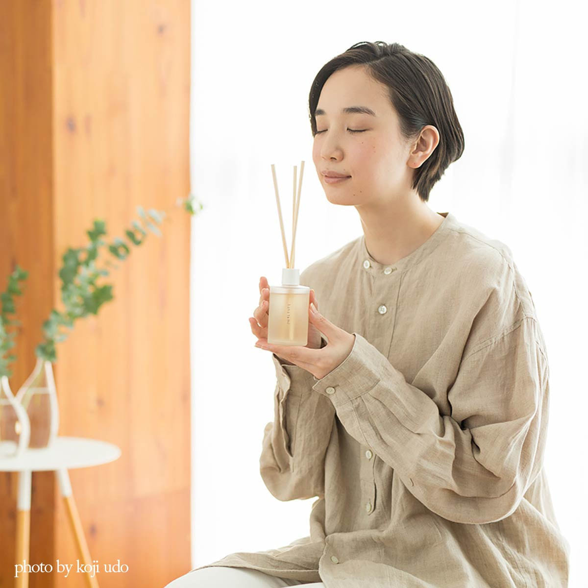 スティックは環境に配慮した国産杉間伐材を使用し、香りは天然精油のみを使用。