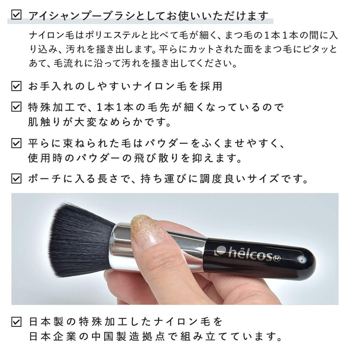 ・お手入れのし易いナイロン毛を採用