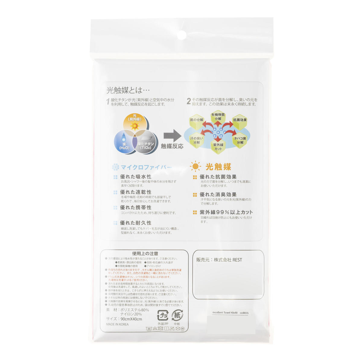 「エクセレントタオル」は、抜群の吸水性をもつマイクロファイバーに光触媒加工を施したタオルです。