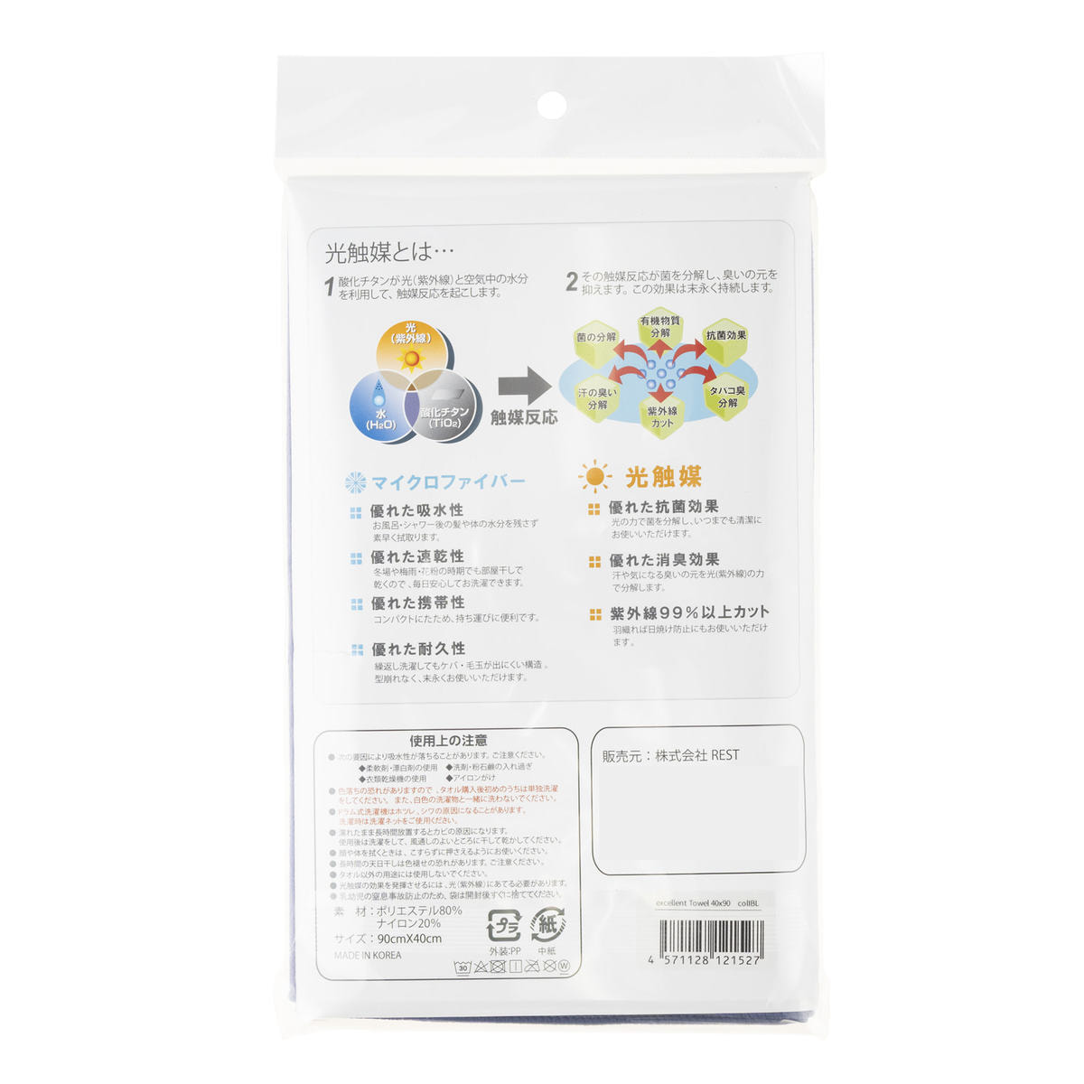 「エクセレントタオル」は、抜群の吸水性をもつマイクロファイバーに光触媒加工を施したタオルです。