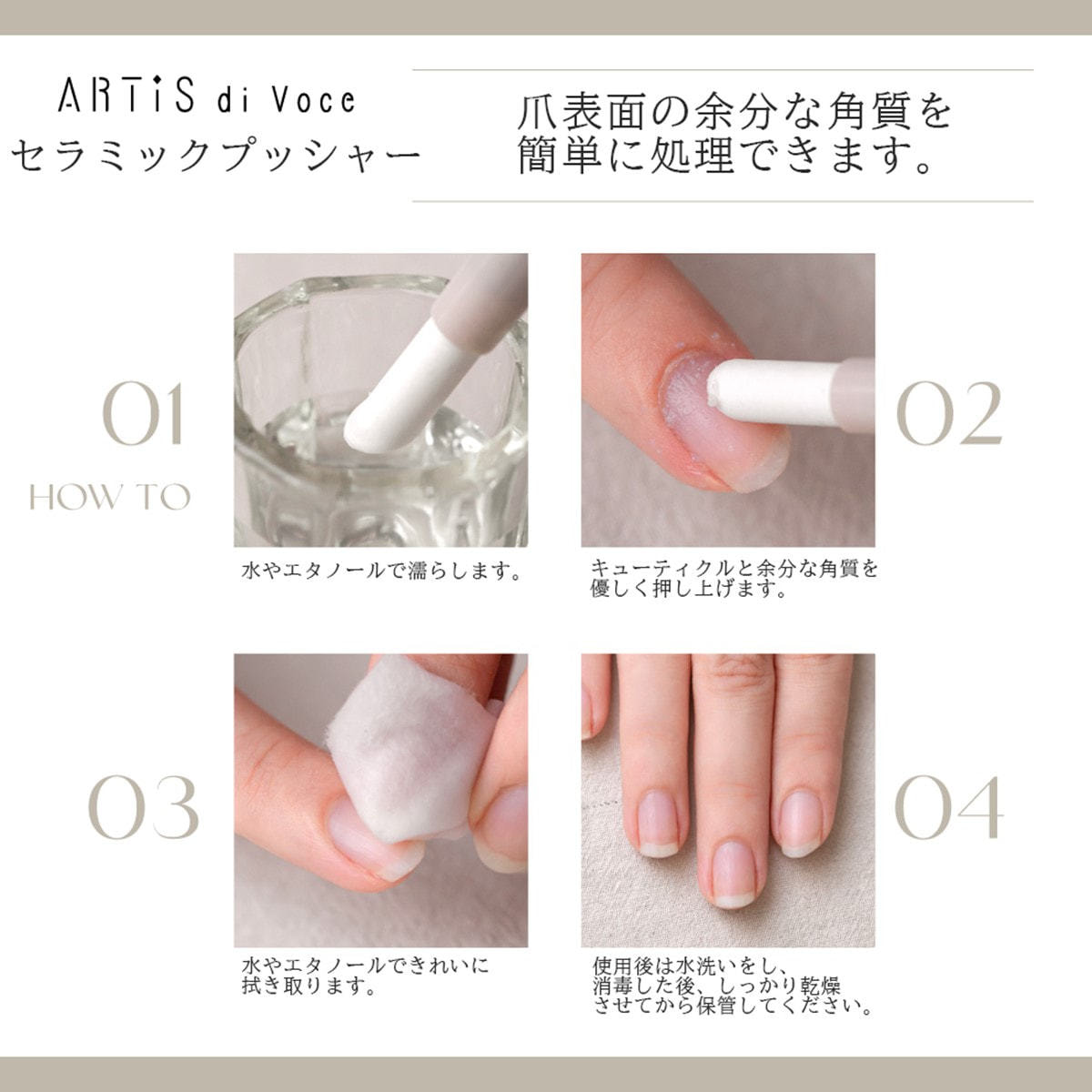 キューティクルの押し上げ、ルースキューティクルの除去が出来るセラミックプッシャー