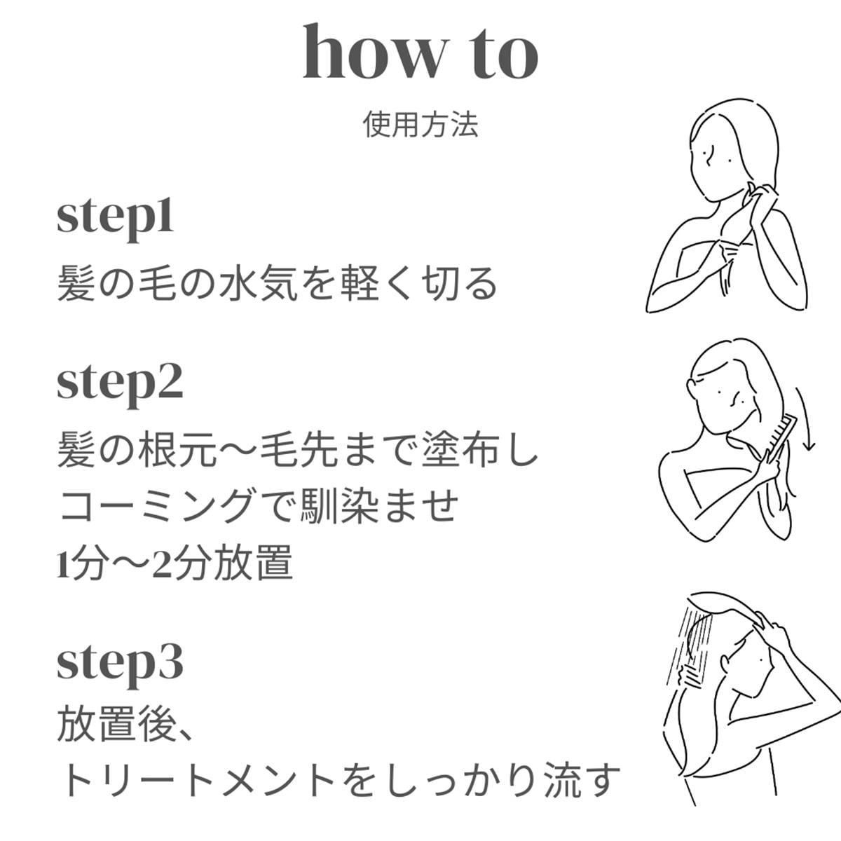 ②髪の根元~毛先迄塗布しコーミングで馴染ませ1~2分放置