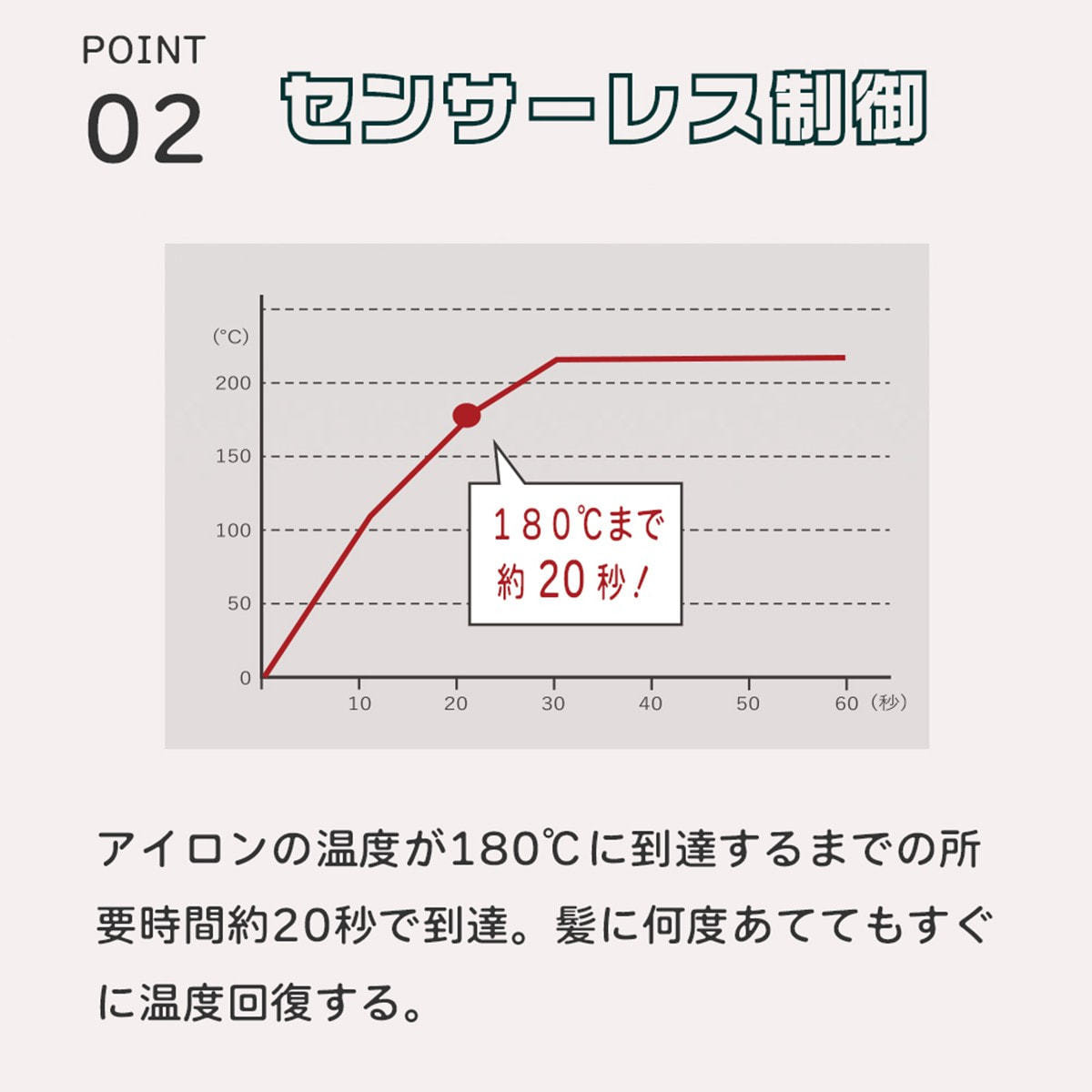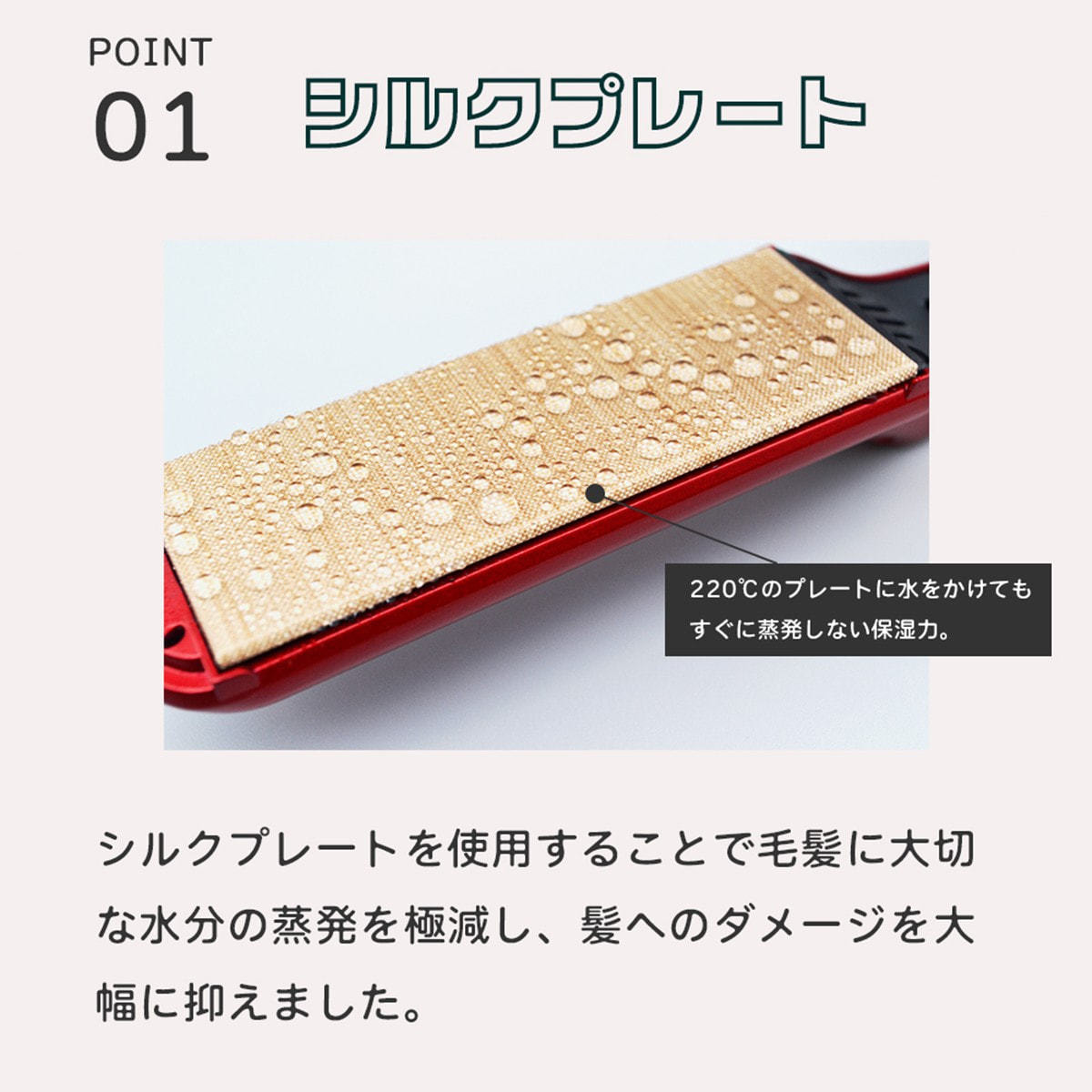 「シルクプレート」のみを搭載しているものや「センサーレス機能」のみを搭載しているアイロンは今までにも存在しましたが、このアイロンにはその両方が搭載されています。両方が搭載されているからこそ温度の安定感が高く、髪への負担を少なく、ヘアデザインすることが可能となります。