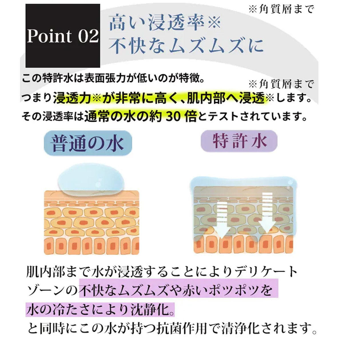 これ一本で全てケア成分の特許水による驚くべき抗菌力により、不快な原因に働きかけます。