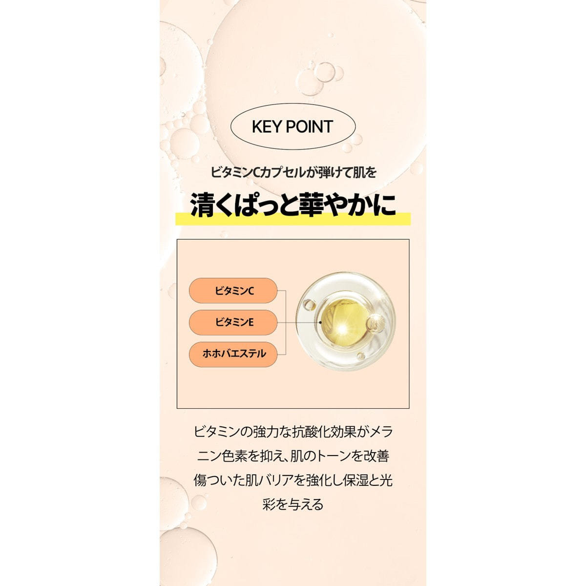 ビタミンCカプセル*1 でメラニンを押さえ、 明るい印象の肌へと導くクレンザーです。