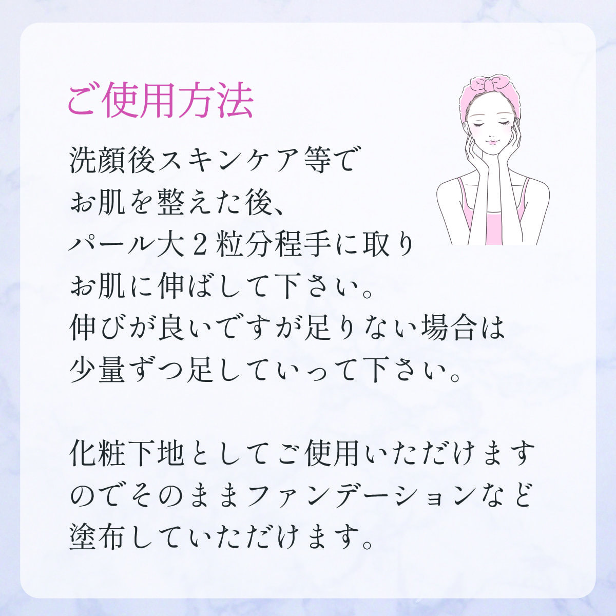 シクロペンタシロキサン、酸化亜鉛、酸化チタン、水、BG、ジメチコン、ポリグリセリル‐3ポリジメチルシロキシエチルジメチコン、イソノナン酸イソトリデシル、(ハイドロゲンジメチコン/オクチルシルセスキオキサン)コポリマー、シリカ、(ジメチコン/(PEG‐10/15))クロスポリマー、α‐アルブチン、リン酸アスコルビルMg、グリチルリチン酸2K、コメ発酵液、イワベンケイ根エキス、アセチルヒアルロン酸Na、コメヌカスフィンゴ糖脂質、コメヌカ油、オタネニンジン根エキス、クズ根エキス、アロエベラ葉エキス、クロレラエキス、オウゴン根エキス、カワラヨモギ花エキス、カンゾウ根エキス、マグワ根皮エキス、ナツメ果実エキス、サンザシエキス、グレープフルーツ果実エキス、リンゴ果実エキス、オレンジ果汁、レモン果汁、ライム果汁、グリセリン、レシチン、オレイン酸ポリグリセリル‐10、クオタニウム‐18ヘクトライト、(加水分解シルク/PGプロピルメチルシランジオール)クロスポリマー、(アクリレーツ/アクリル酸アルキル(C10‐30))クロスポリマー、(ビニルジメチコン/メチコンシルセスキオキサン)クロスポリマー、(ジメチコン/ビニルジメチコン)クロスポリマー、塩化Na、クエン酸Na、水酸化Na、水酸化Al、ホウケイ酸(Ca/Al)、フェノキシエタノール