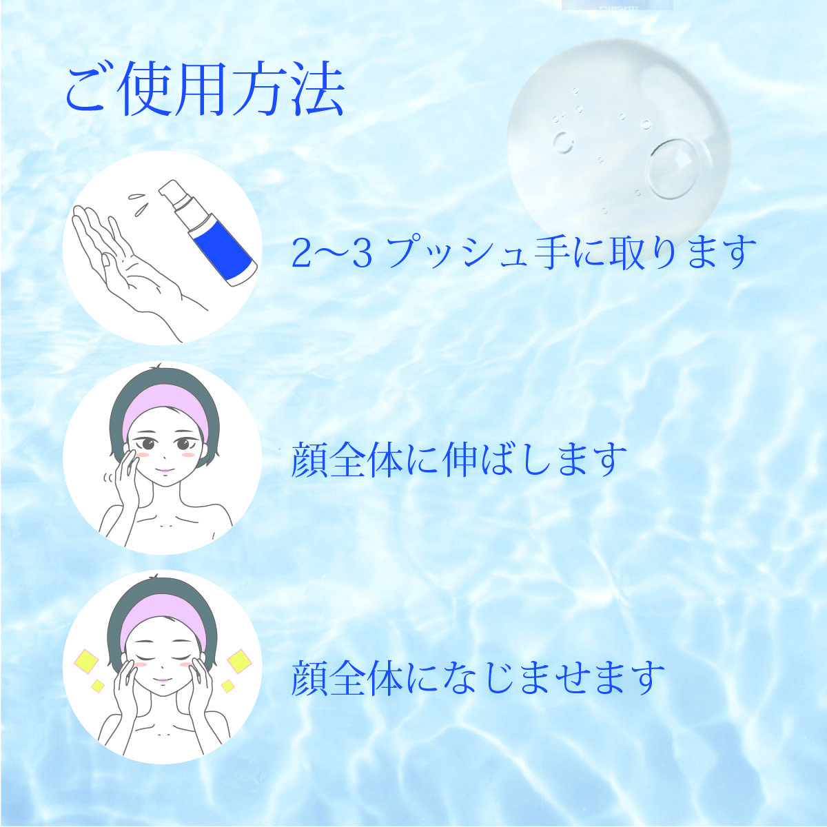 3.顔全体になじませます。(気になるところに部分的にもお使いいただけます。)