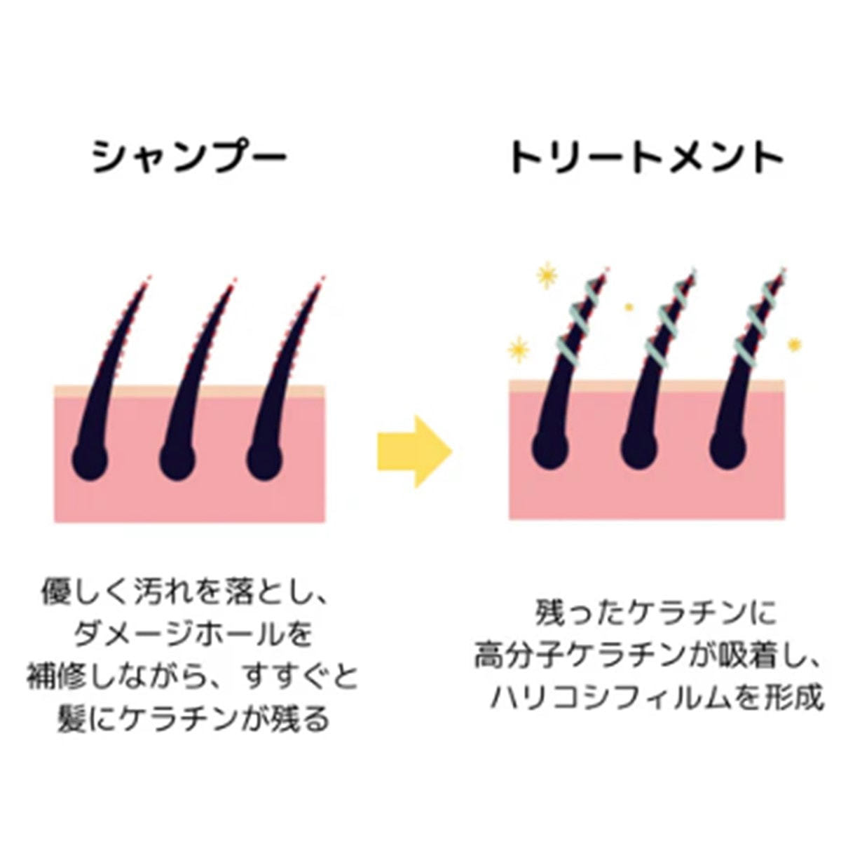 すすぎの段階で植物性の洗浄成分*2が髪をコートする保護膜に変身する「コアセルベーション技術」を採用。
