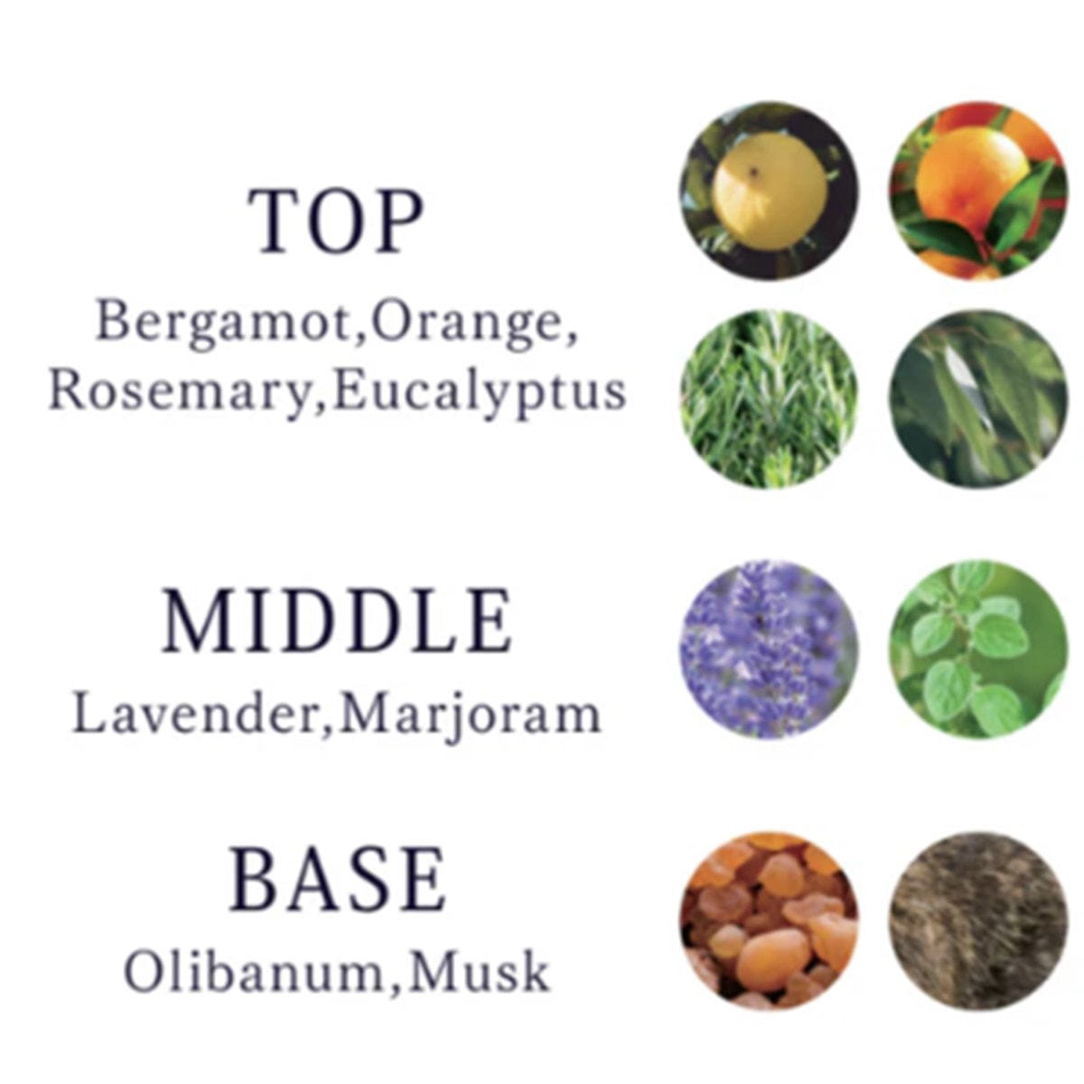 ベルガモットやオレンジの明るくフルーティな香りに、ユーカリのアクセントをプラス。