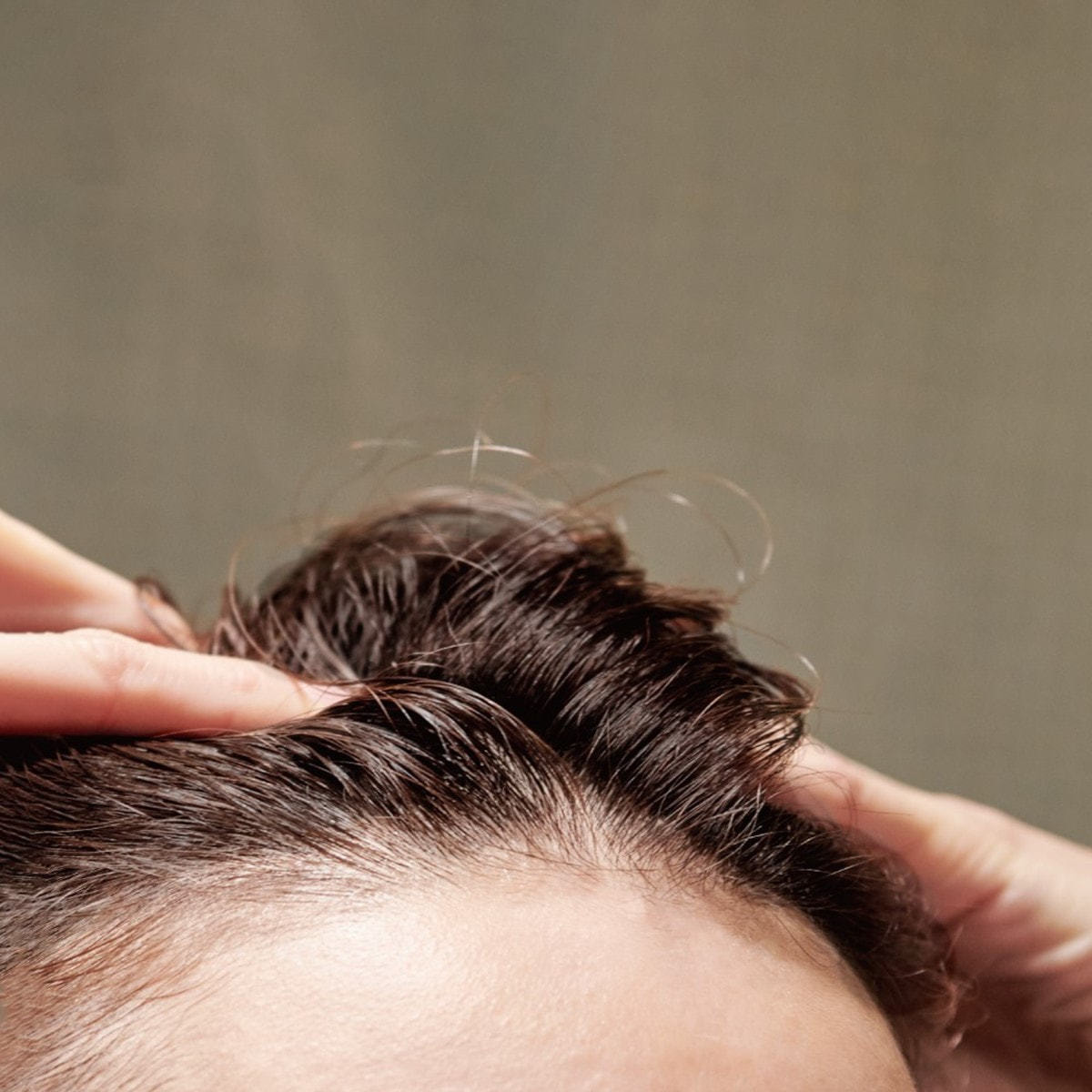 ブラッシングし髪のからまりをといた後に、頭皮までしっかりと濡らし、適量を手に取り、指の腹で頭皮をやさしくマッサージするように洗います。