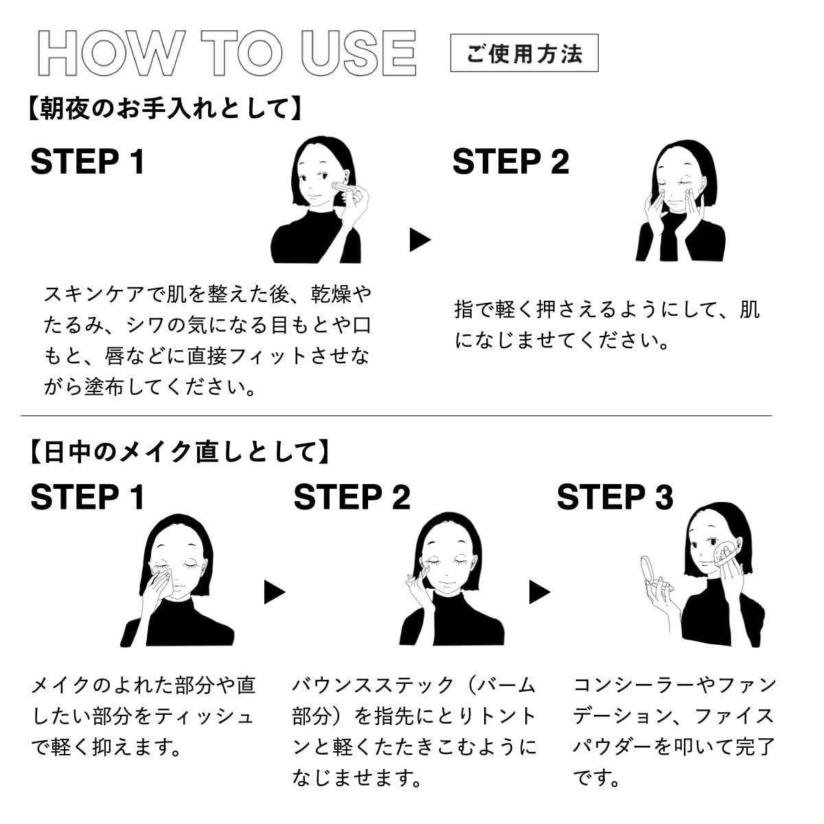 スキンケアで肌を整えた後、スティックを2~3mm繰り出し、お肌の気になる部分に直接塗りなじませてください。