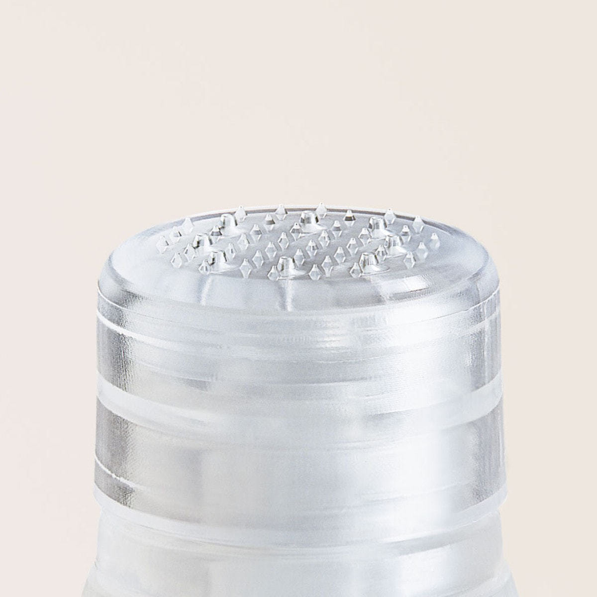 2.容器尾部のボタンを1~2回ノックし、その状態を3秒保持して美容液を角層に注入します