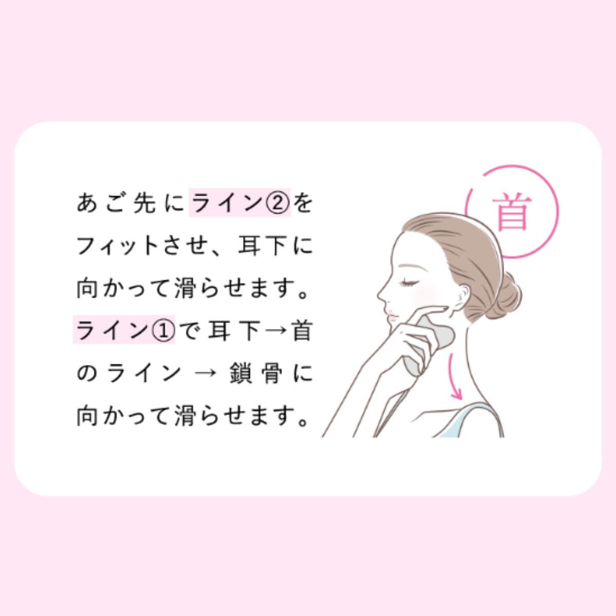 あご先にライン②をフィットさせ、耳下に向かって滑らせます。