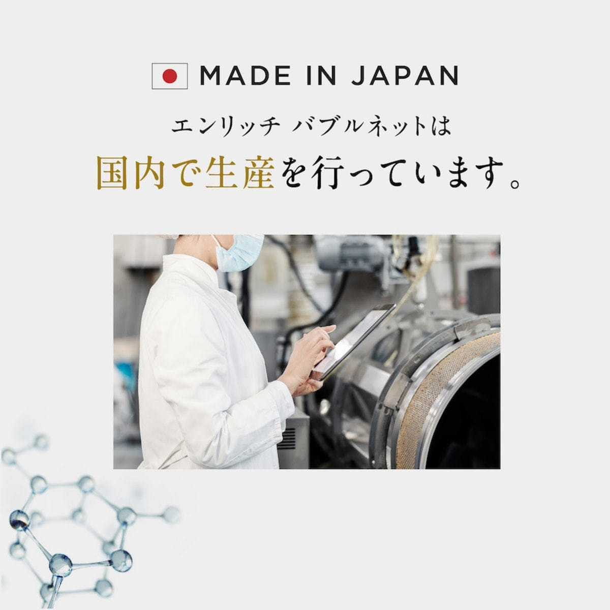 エンリッチバブルネットは国内で生産を行っています。